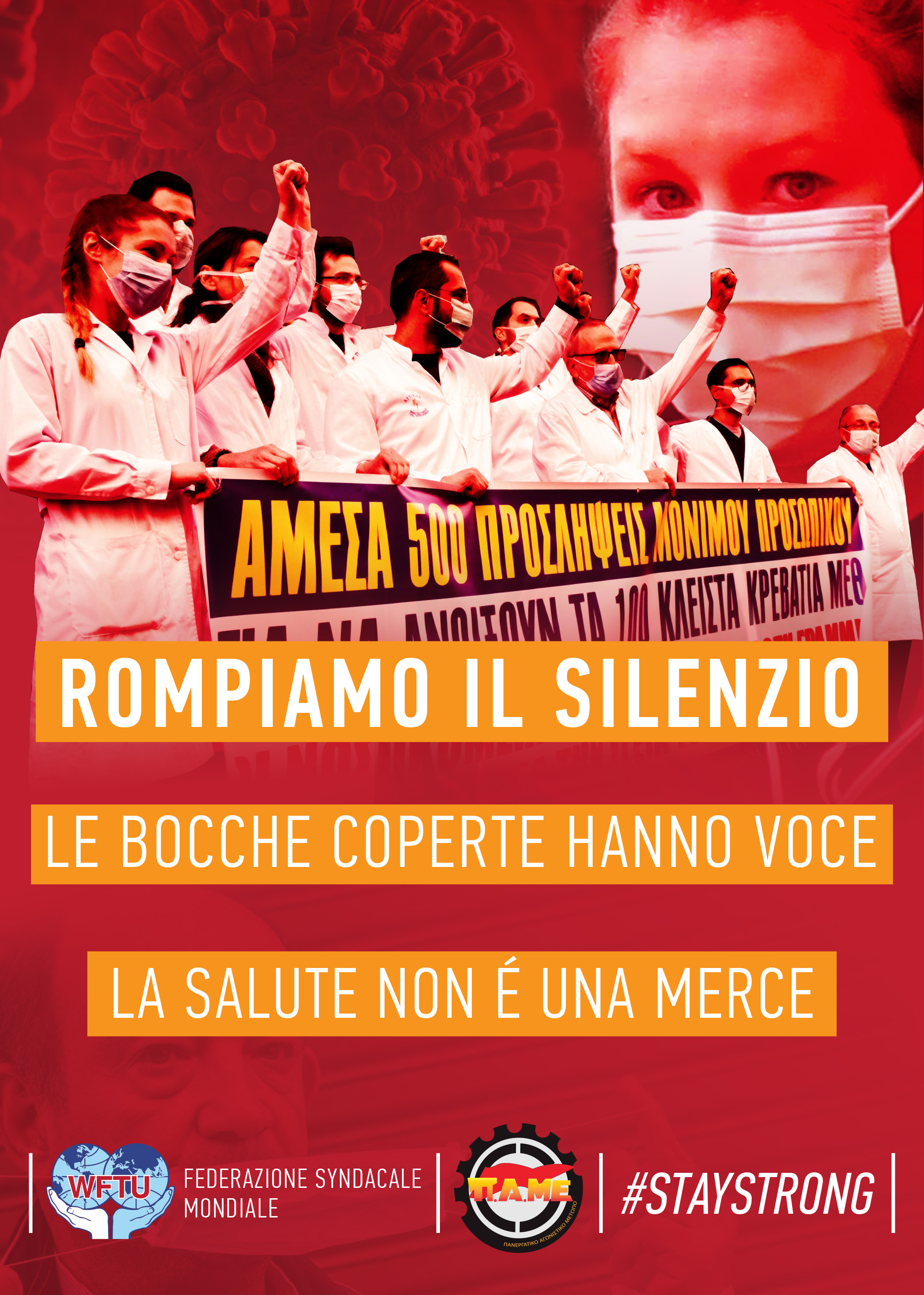 Anche così, questo settore della sanità pubblica, questo settore abbandonato, combatte oggi come un esercito invincibile; molte volte senza armi, senza protezione individuale, ma con coraggio. Fino ad oggi, 61( oggi 89 ndt) medici in Italia si sono ammalati e hanno perso la vita, sono morti in prima linea in questa lotta impari. Lo stesso accade in Spagna, Francia, Grecia e Stati Uniti ...